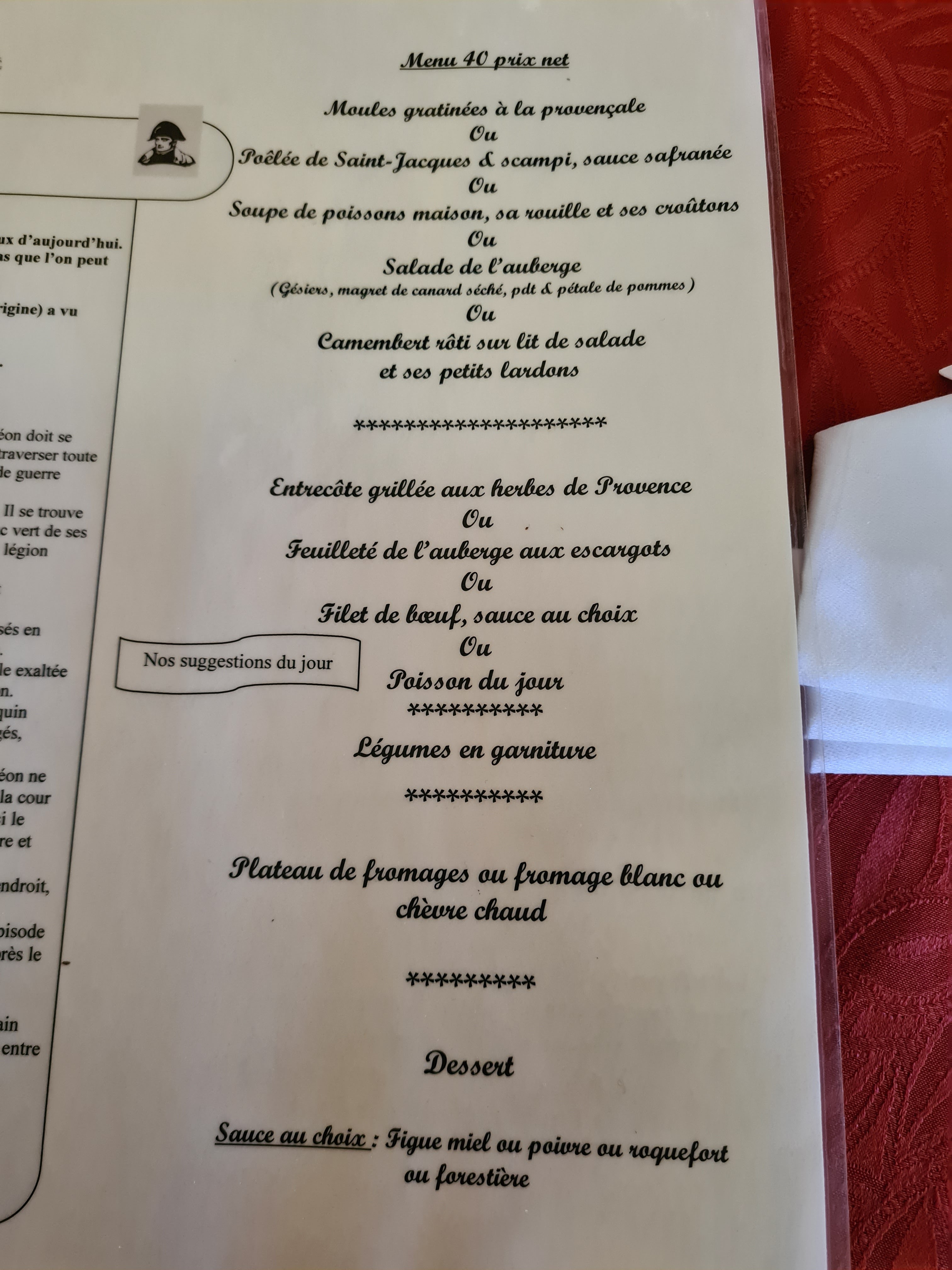 Restaurant agréable, bon accueil, on y mange bien, Napoléon y aurait fait une escale.....