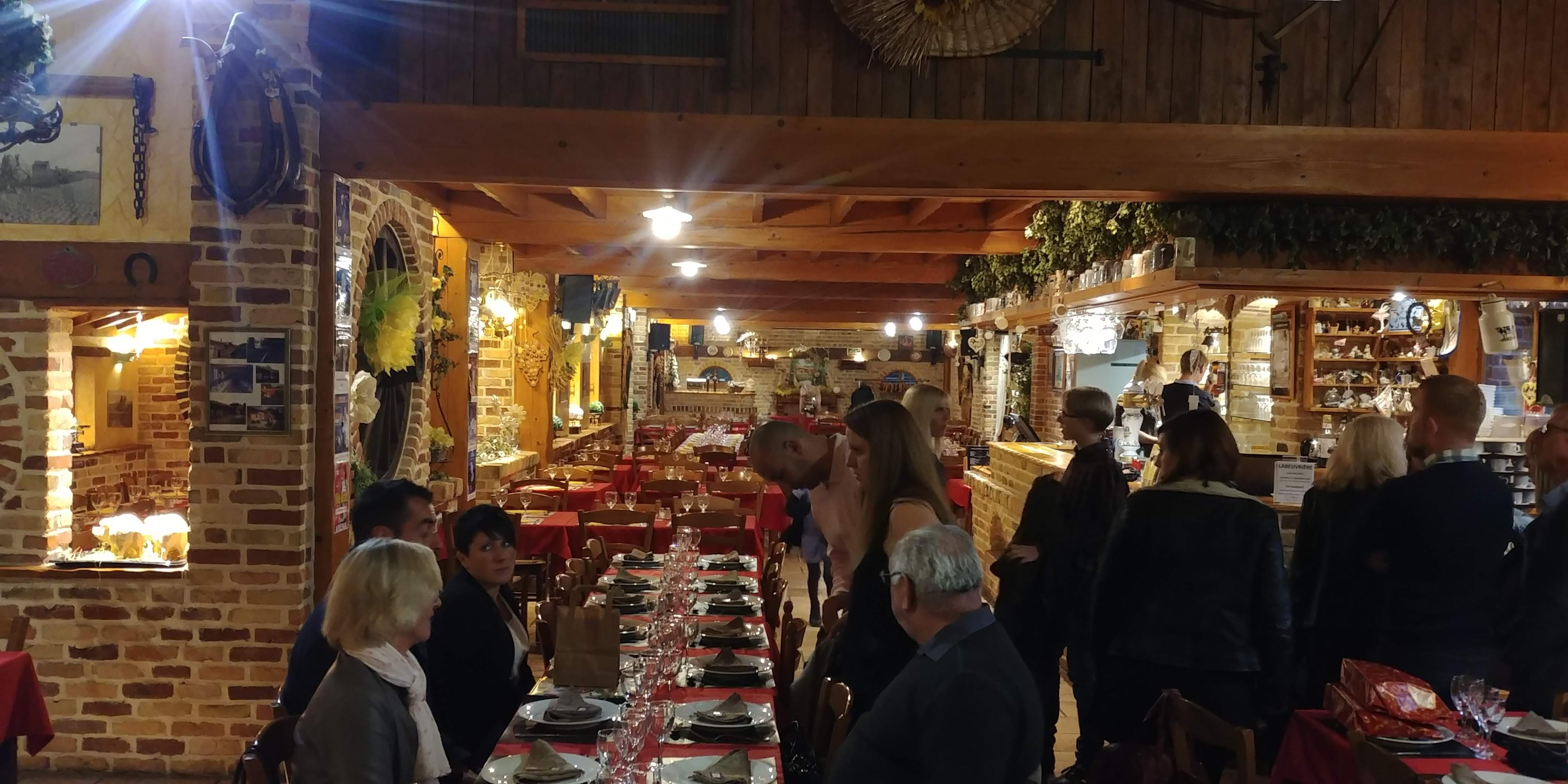 Que de bons moments passés dans cette institution du bon vivre dans la joie et l'allégresse ! Décoration, aménagement, cheminée feu de bois, rôtisserie, étang, jardin, cuisine... Tout est mis en oeuvre pour passer un moment inoubliable d'autant que le patron est un animateur hors pair ! Dans une ambiance chaleureuse où, malgré le peu de place à la danse, vous serez amené à vous déhancher au côté d'un des nombreux convives... Cela débouchera peut-être sur une belle amitié. Ici les liens et la réputation de l'esprit Chti ont trouvé leur place. Une belle découverte. Petite ombre au tableau, attention au stationnement peu éclairé où le risque de mettre ses pieds dans l'eau par mauvais temps est très probable... Mais avec l'animation qui règne à l'intérieur, ils vont très vite sécher...