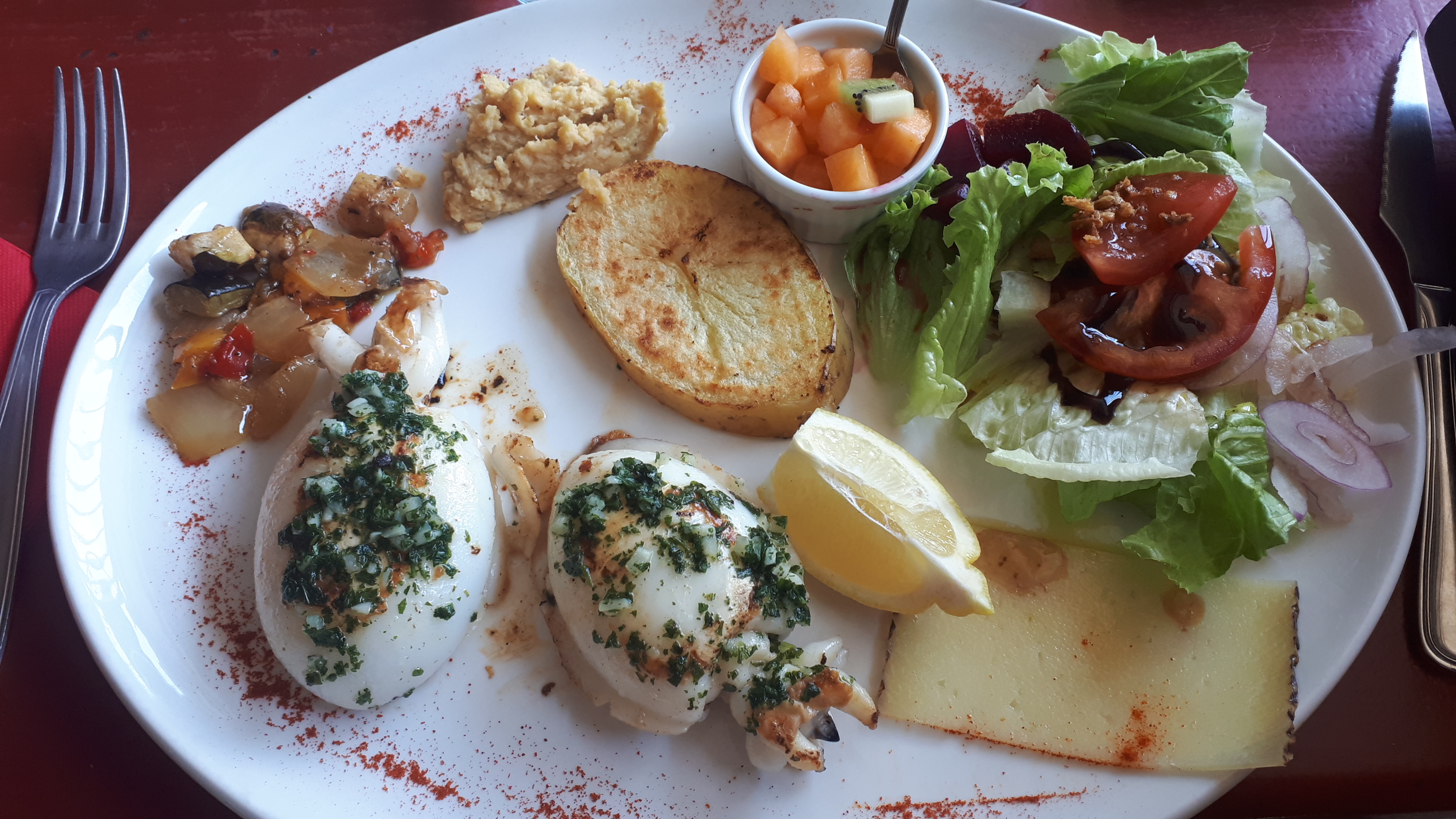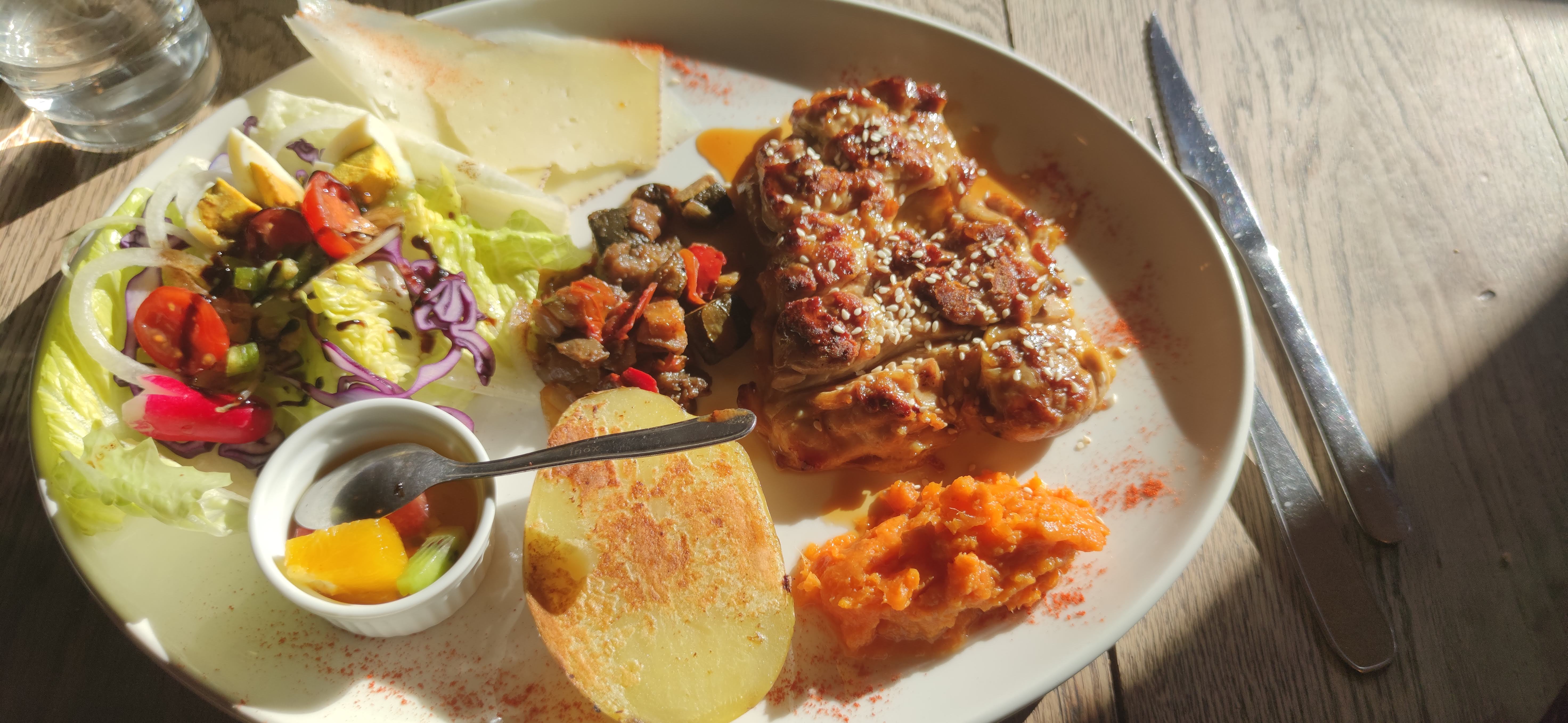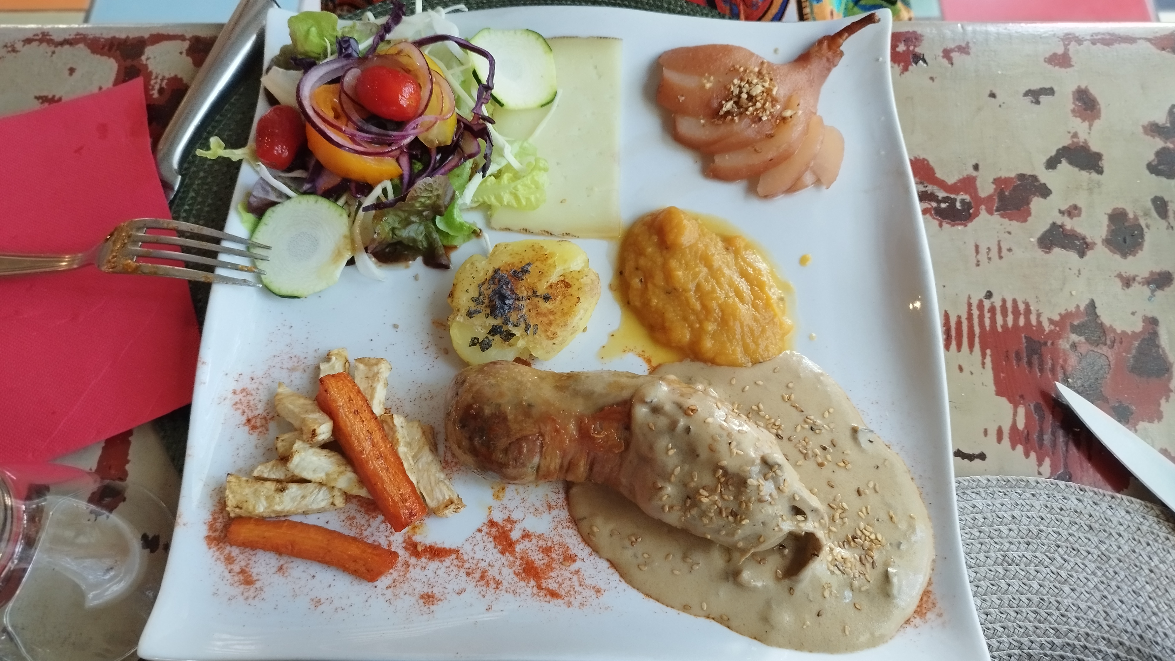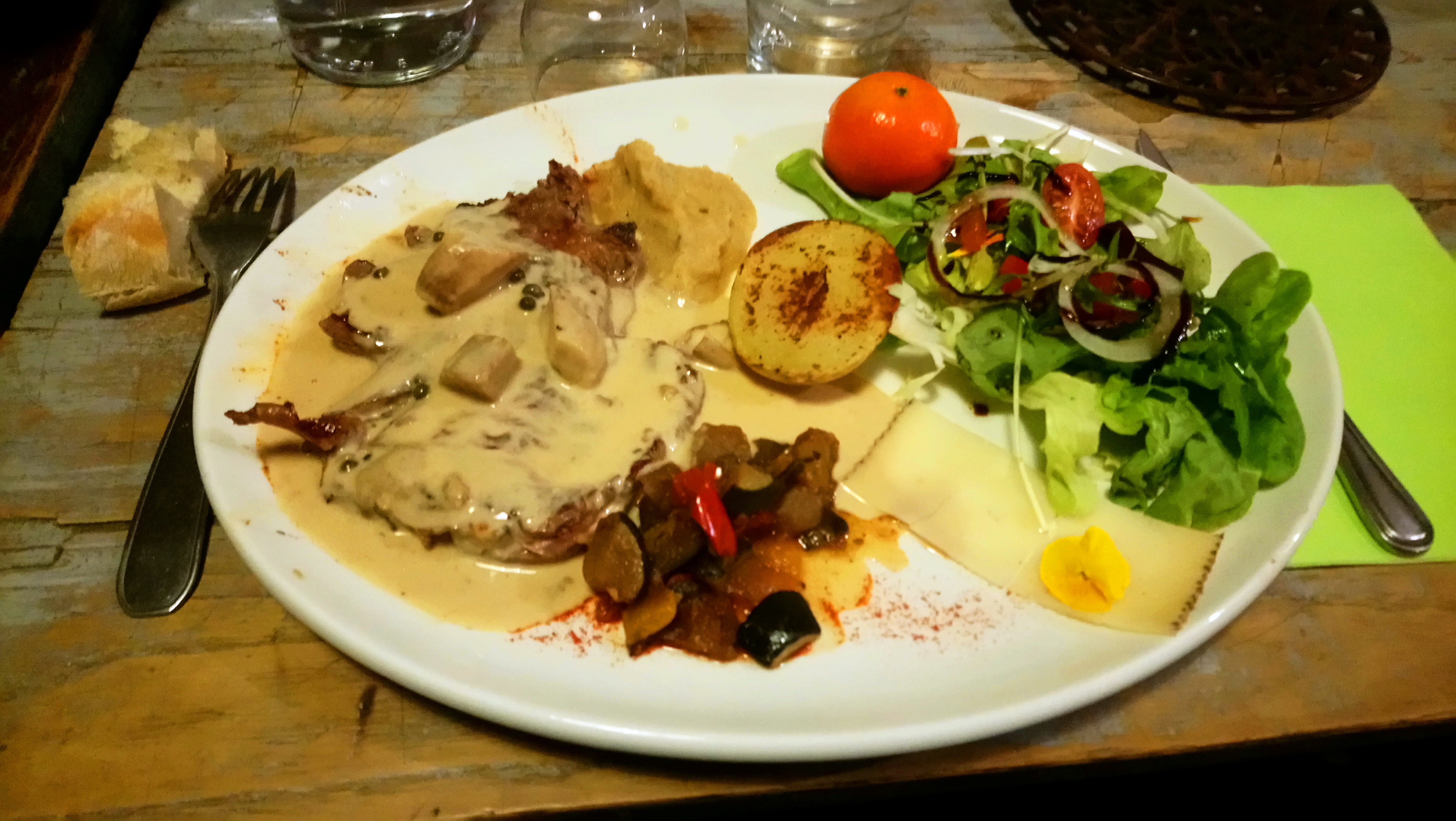 Simple avec des belles assiettes. Bon repas au calme pas cher