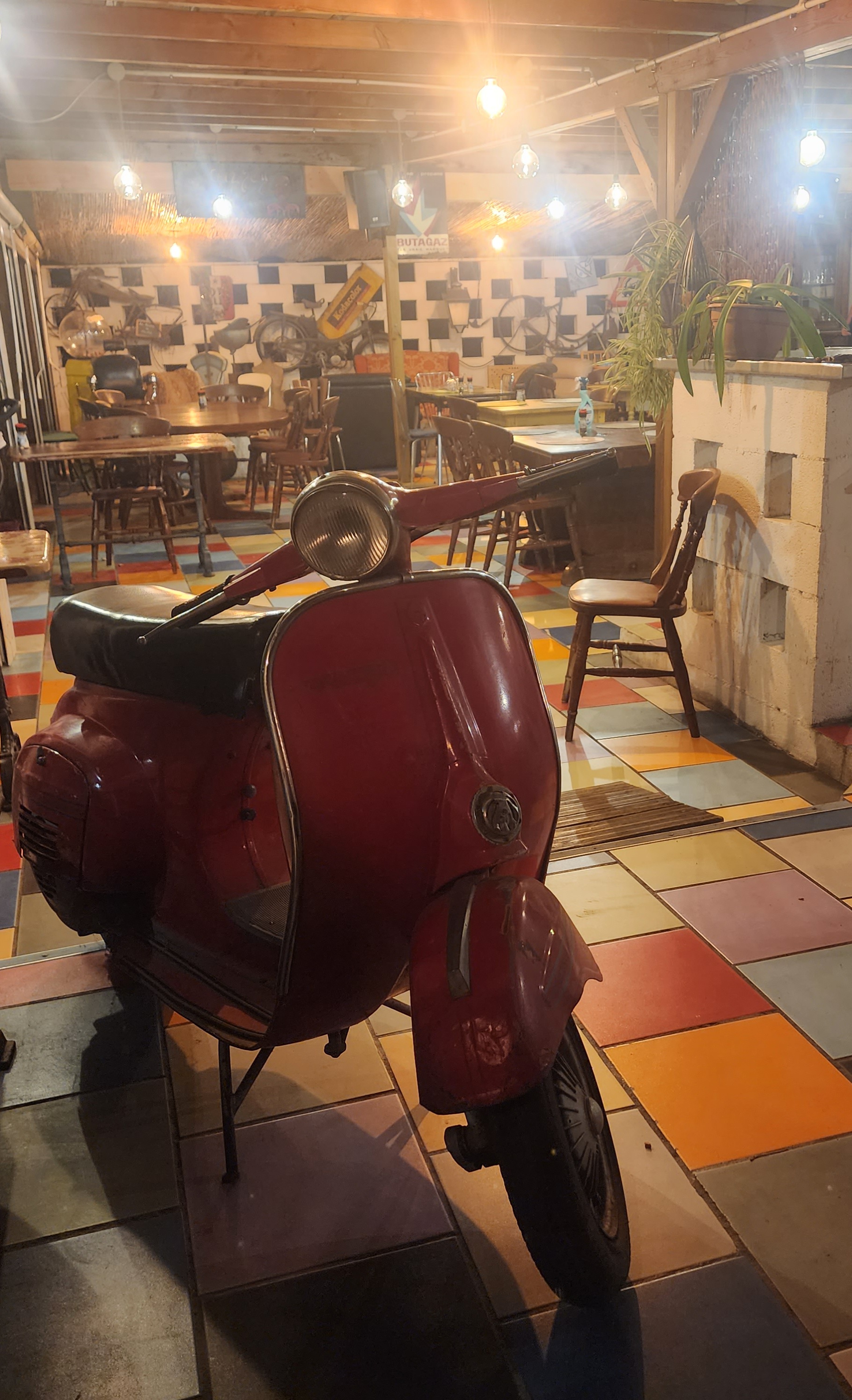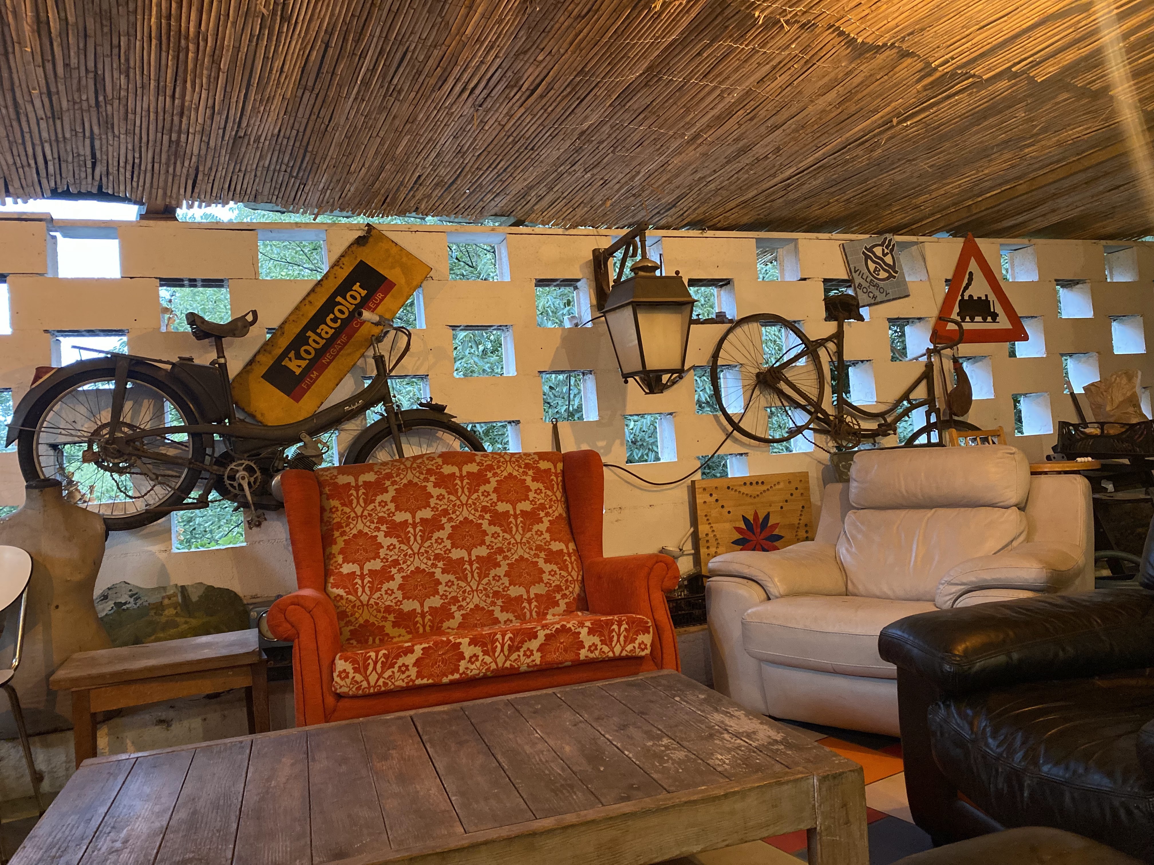 Endroit charmant décoré de vielles motos de tout j ai adoré