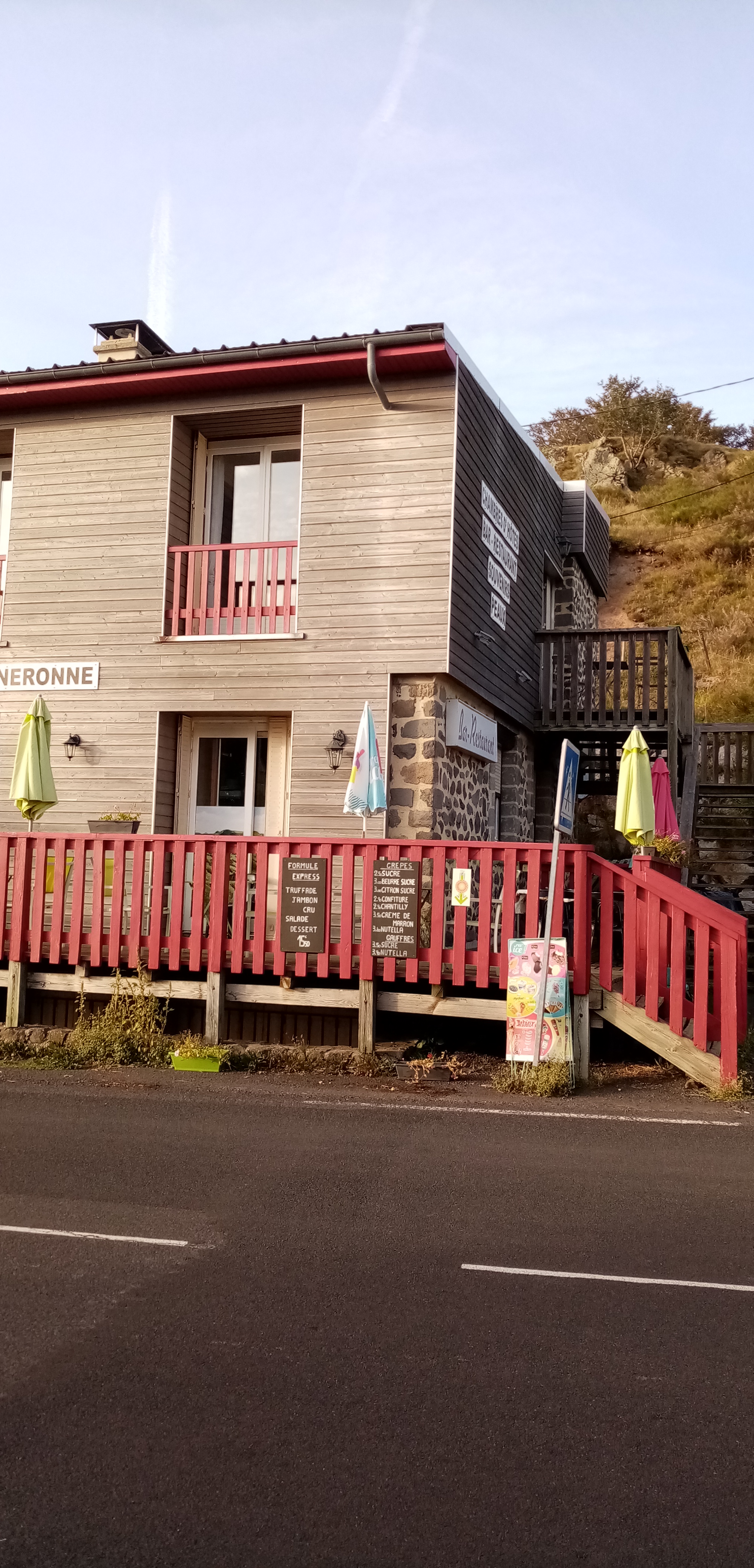 Après une grosse randonnée de Récusset jusqu’à la Brèche d’Enfloquet, il était nécessaire d’avoir un petit réconfort à l’arrivée ! L’auberge est un parfait endroit pour se poser, on a pu regarder nos photos et nos belles vidéos accompagnée de délicieuses glaces artisanales de Mauriac, à l’ombre c’était agréable. Bref, très bon accueil, de bons produits, la gérante a passé du temps à discuter avec nous on a adoré ce moment !