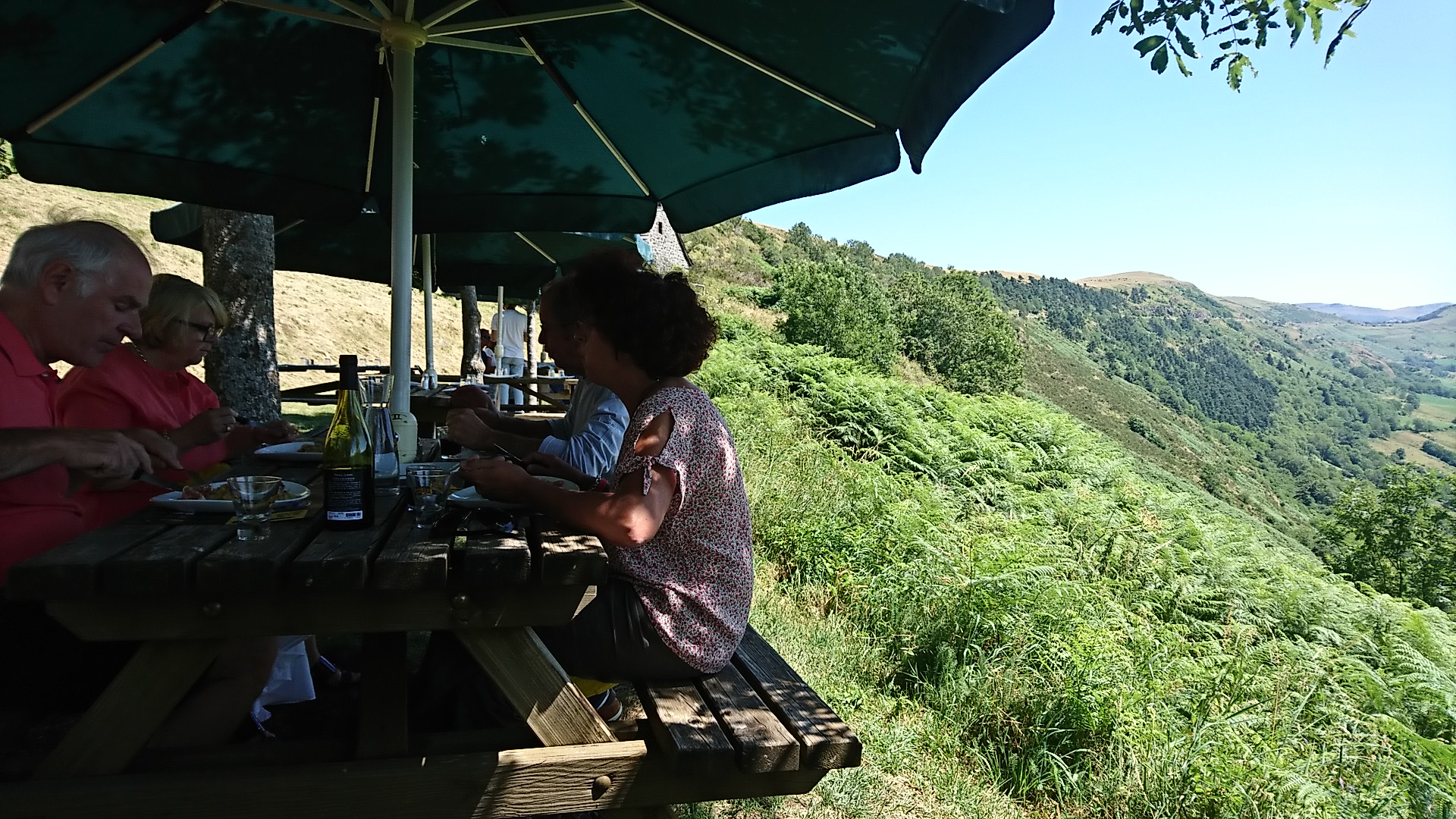 Nous avons admiré la vallée depuis la terrasse. Quel plaisir de déjeuner face à un tel décor ! Grand merci aux propriétaires de l'auberge pour leur accueil sympathique et leur sourire. Visite du 30 août 2021, signé les 3 cafés !!!
