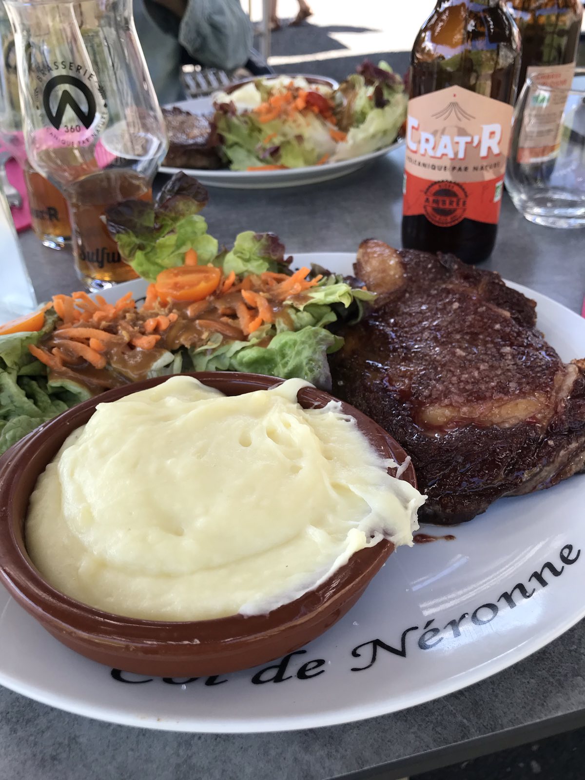 Nous sommes tombés par hasard sur ce restaurant et n’avons pas été déçus. L’aligot était excellent et l'entrecôte fabuleuse! Les desserts sont également délicieux. Pour ne rien gâcher la serveuse est très sympathique. Nous retiendrons cette adresse où on y mange très bien avec un panorama superbe et pour un excellent rapport qualité/prix.