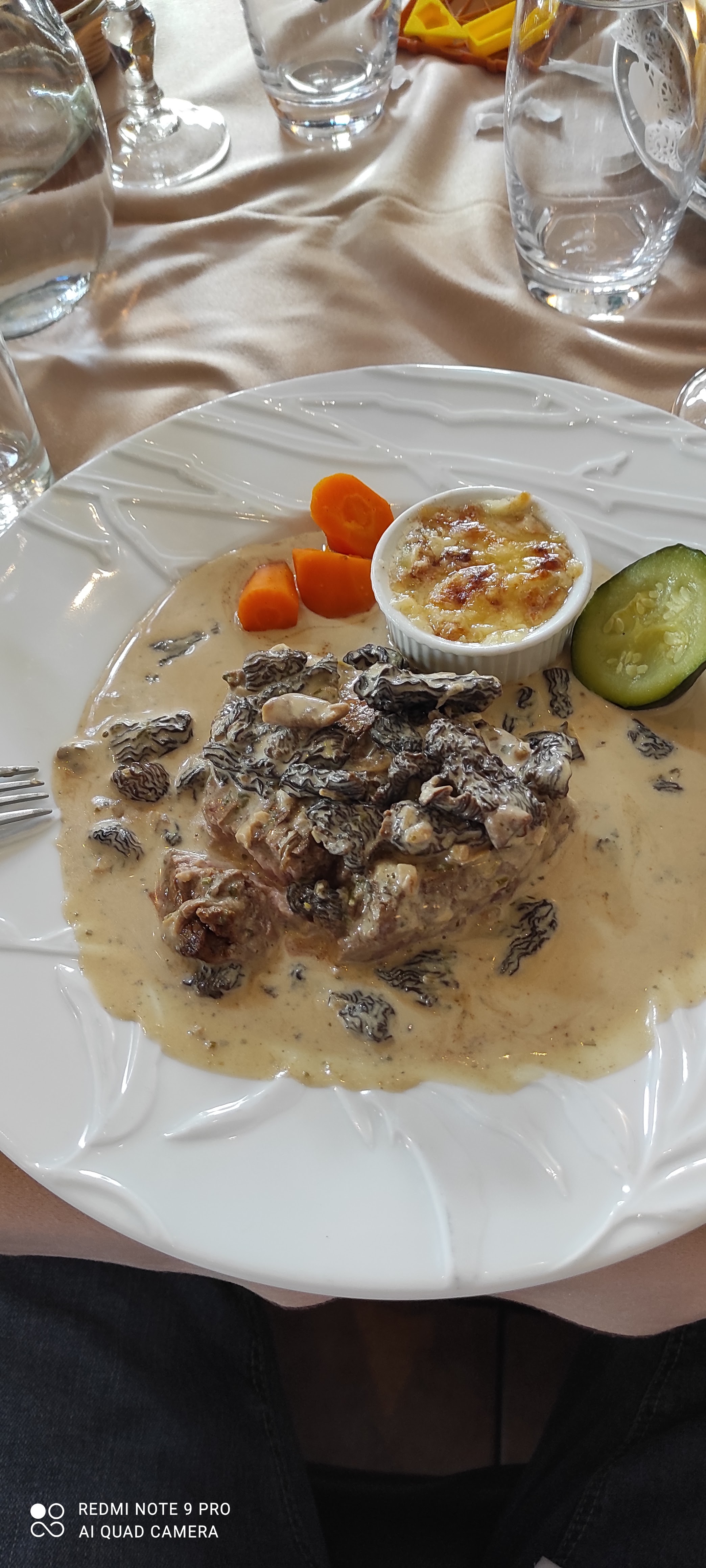 Nous avons pris le menu des morillons. Accrochez vous pour une explosion des saveurs et du ventre ! Entrée avec des produits de qualités en quantité imposante. Filet de bœuf aux morilles. Incroyable la quantité de morilles proposées. Dessert au choix à la carte. Tarif plus que correct. Ce restaurant vaut le détour. La salle en elle même est un peu trop classique à mon goût. Le service est impeccable et très rapide. J ai hâte de renouveler l expérience quand je repasserai dans la région. A bientôt