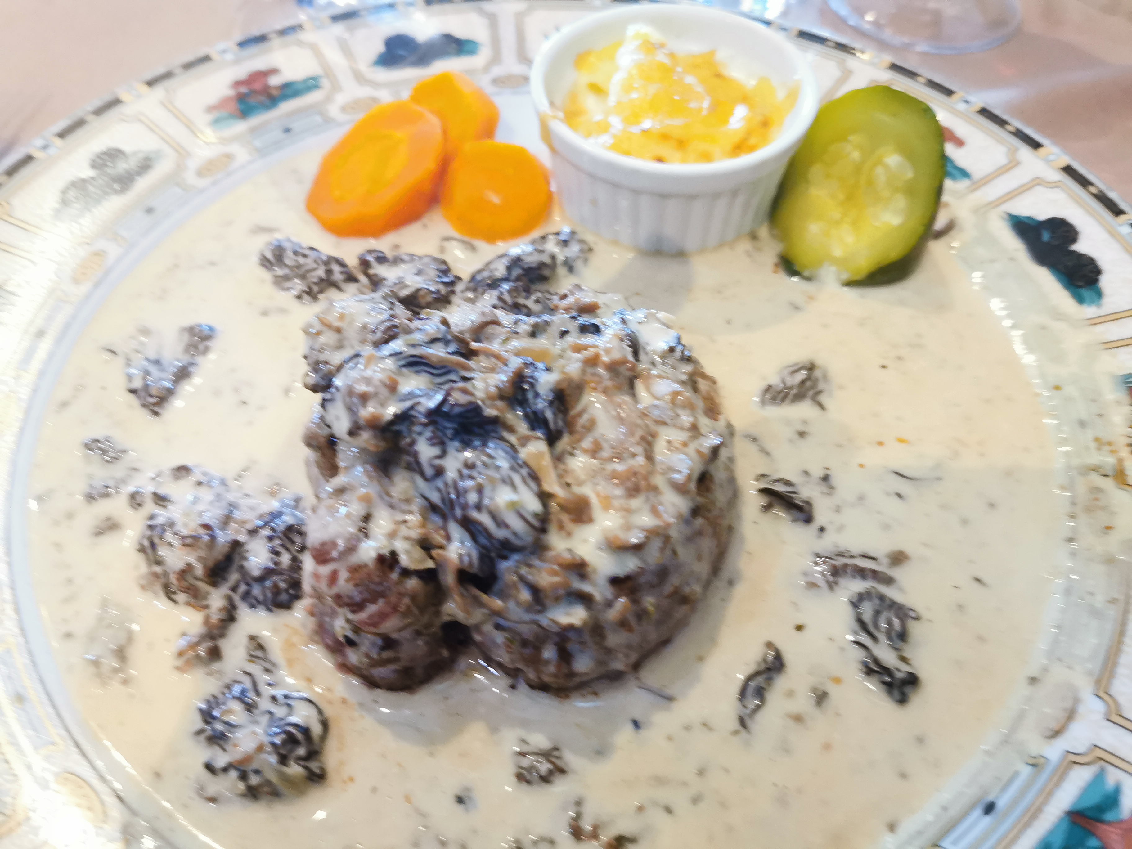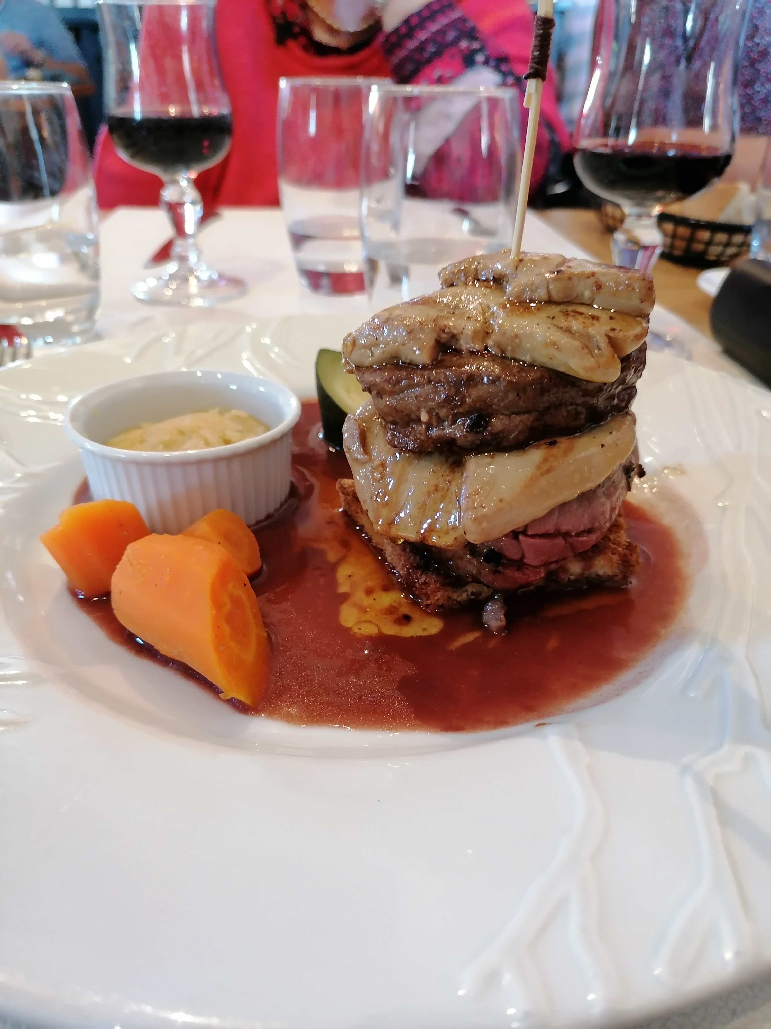 Nous sommes venu un soir de semaine. Il y a peu de monde. Le serveur est sympa et accueillant. Nous avons commencé par un apéritif, pour ma part j'ai demandé un kir royal à la cerise, je le reçois à la framboise... Je l'accepte tout en faisant remarquer au serveur l'erreur. Ensuite l'entrée du tournedos est originale et nous l'avons aimés. Nous continuons avec deux tournedos, la cuisson est parfaite, les morillons et sa sauce excellente. Dommage que les accompagnement se résument à un petit bout de courgette, un petit gratin en vérine, trois rondelles d'une carotte miniature et un peu de frites, trop salés à notre goût. La bouteille de vin prend du retard et nous sommes obligés de la réclamer si l'on ne veut pas manger froid. Je constate le même oubli de la part du serveur à la table suivante... A ce niveau du repas, nous sommes rassasiés et on décide de ne pas prendre les desserts de nos menus mais un seul café à la place. Fin du repas, nous passons à l'addition en précisant à la personne qui encaisse que nous n'avons pas pris nos desserts. Elle est étonnée mais elle nous compte tout de même deux menus entier pour un total de 127€... Le café n'a pas été compté soit par oubli, soit par geste. Au final, un loupé à l'apéritif, un loupé avec le vin, déçu par les quantités d'accompagnement et nous payons pour un dessert que nous n'avons pas mangés. Nous sommes déçus comparé à notre ancienne expérience qui remonte à plusieurs années.
