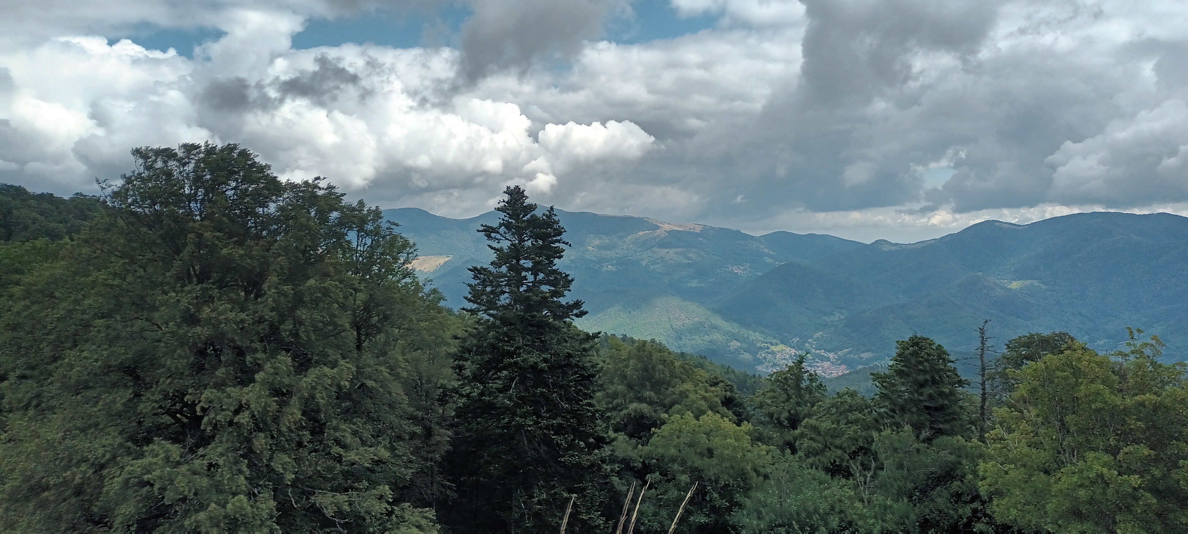 Vue magnifique depuis la terasse, juste un arret rapide pour une bière fraiche et se dégourdire les jambes après la raide montée.
