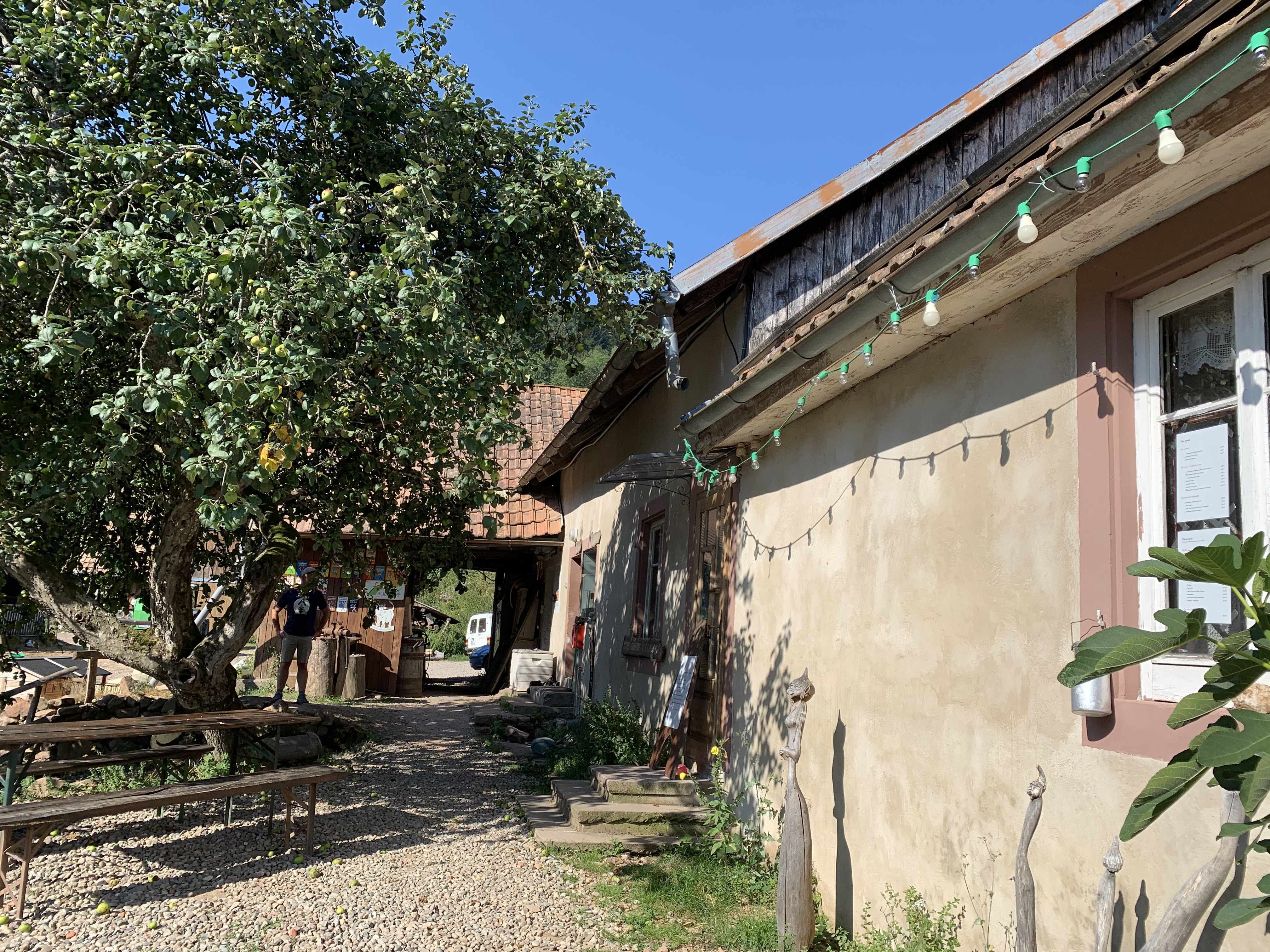 Le lieu baigne dans son jus. C'est une ferme, pas de surprise. Même s'il est vrai qu'un peu de rangement ou de nettoyage ne serait pas de trop. Autant à l'intérieur qu'à l'extérieur. L'accueil bien qu'agreable reste assez froid. Si on passe ce côté peu chaleureux, nous pouvons apprécier la nature, les animaux et le vin. L'apéritif avec le vin de sureau était délicieux. Les fleischnackas maison sont bons sans être exceptionnels, la tarte en dessert est appréciable avec ses fruits frais. Les toilettes sont propres. Il y a de belles balades à faire autour.