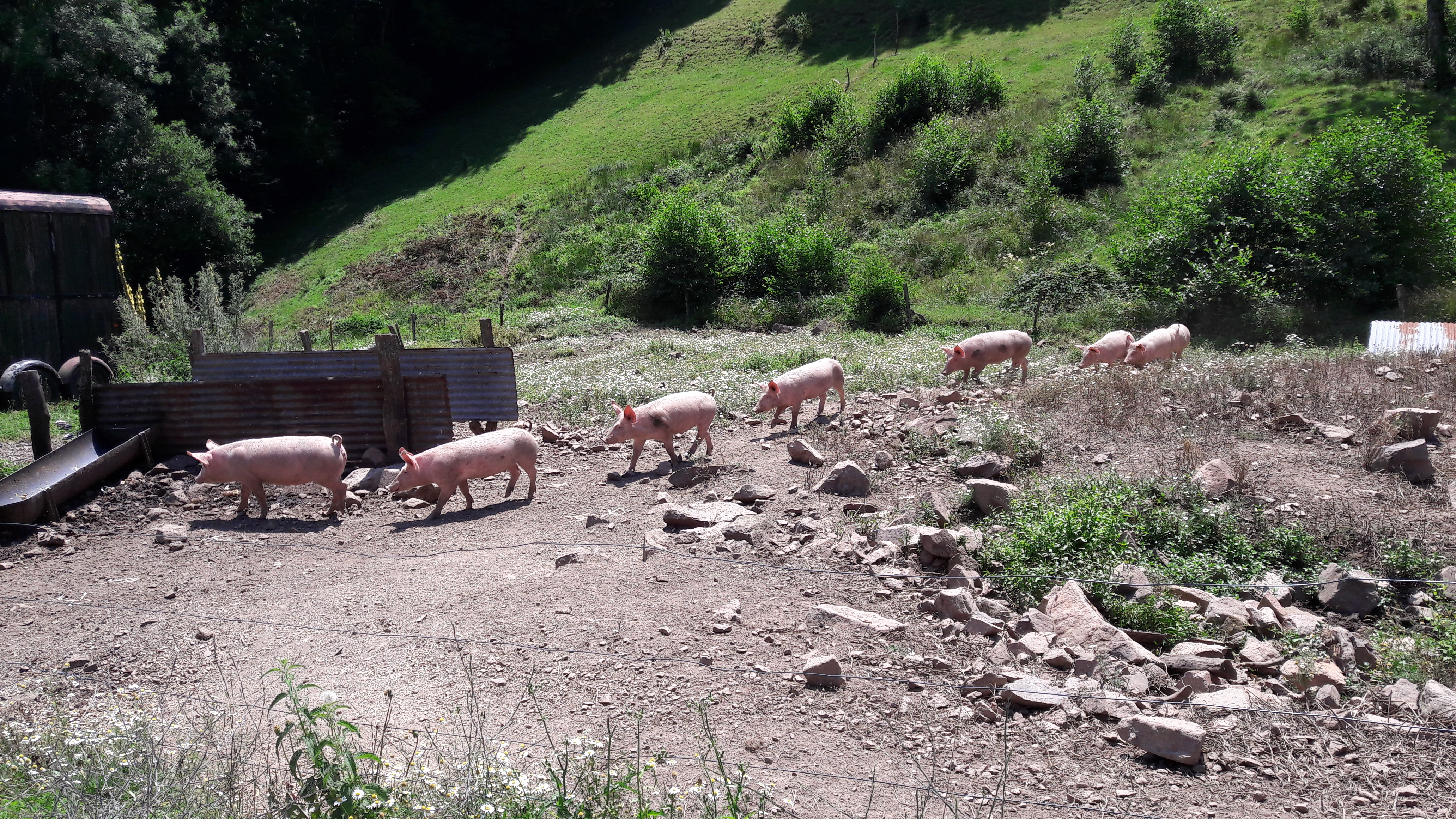 Camping dans un pré, petit déjeuner (lard, fromages et miel, tout ça maison), une ferme auberge vraiment authentique !
