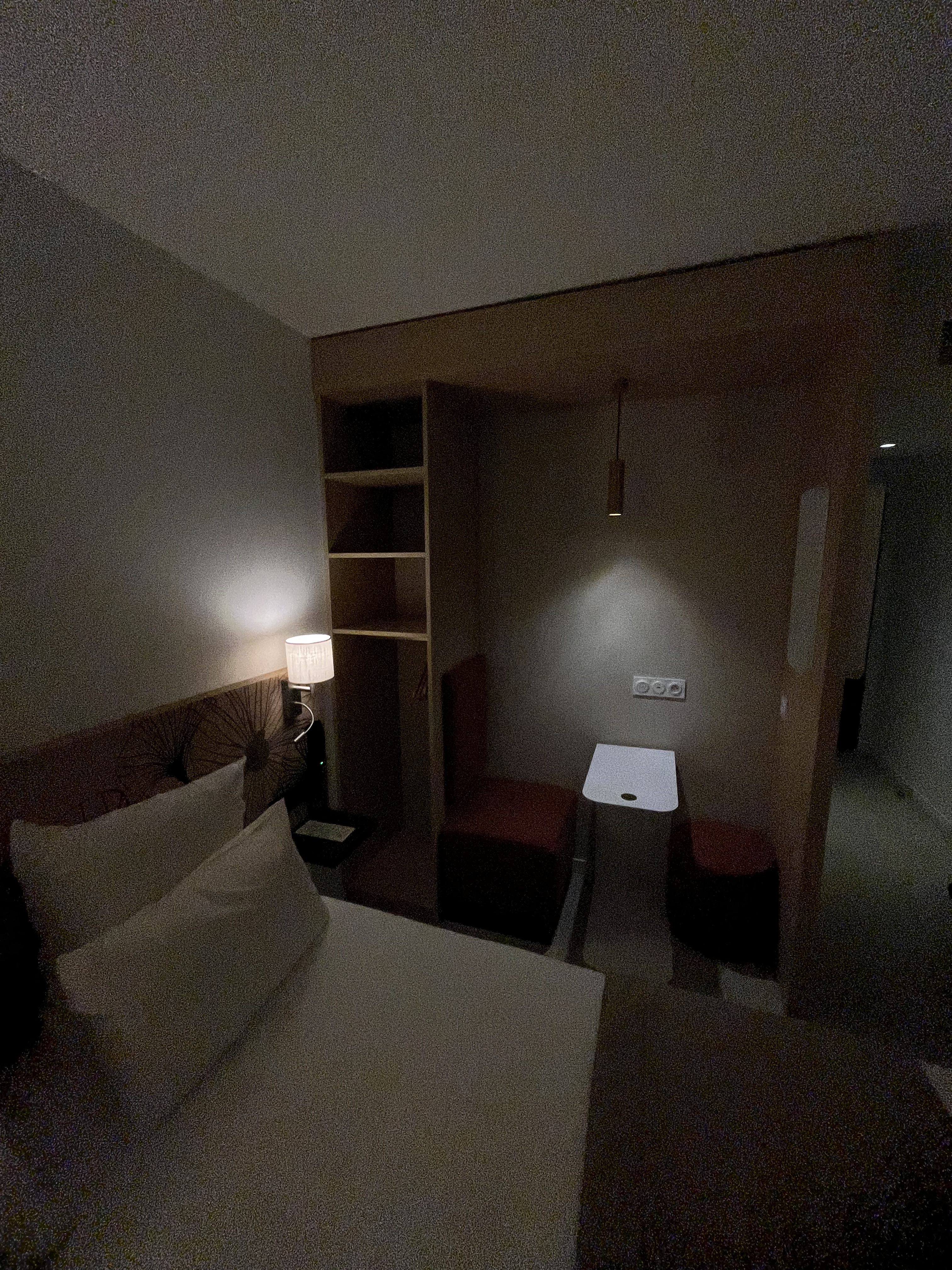 Tout beau tout neuf. Après l essentiel à été oublié, un lit confortable, car matelat bien trop ferme. Sinon Hôtel bien aménagé, decos originales, chambres bien aménagées... Accueil au petits soins. Dommage que le lit soit pas à la hauteur car on a plus l'impression de dormir sur un tapis que sur un lit douillet. Raison nommée à l'accueil sans excuses.. C'est tout neuf.. Bon il existe aussi des matelats neufs confortables pas vraiment une excuse.