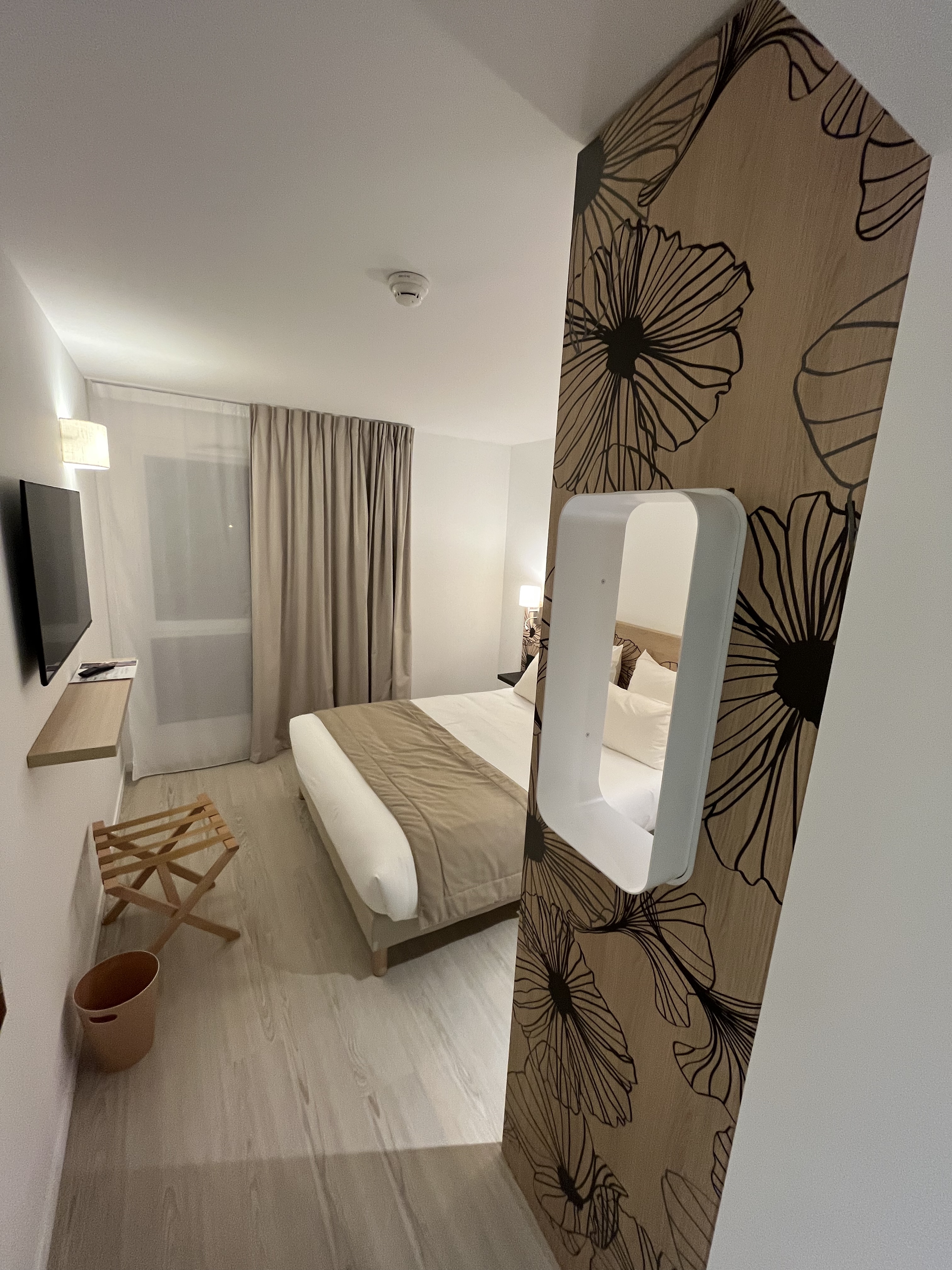 Nous avons eu la chance d'inaugurer une des chambres de ce bel hôtel flambant neuf ! À deux pas de la clinique Croix du Sud, facile d'accès. Accueil chaleureux, chambre spacieuse, literie confortable, propreté irréprochable... 🤩 S'il y avait une chose à redire ce serait au sujet des éclairages des enseignes autour de l'hôtel qui éclairent un peu trop la chambre la nuit. Si vous aimez le noir complet prévoyez un bandeau pour les yeux 😎