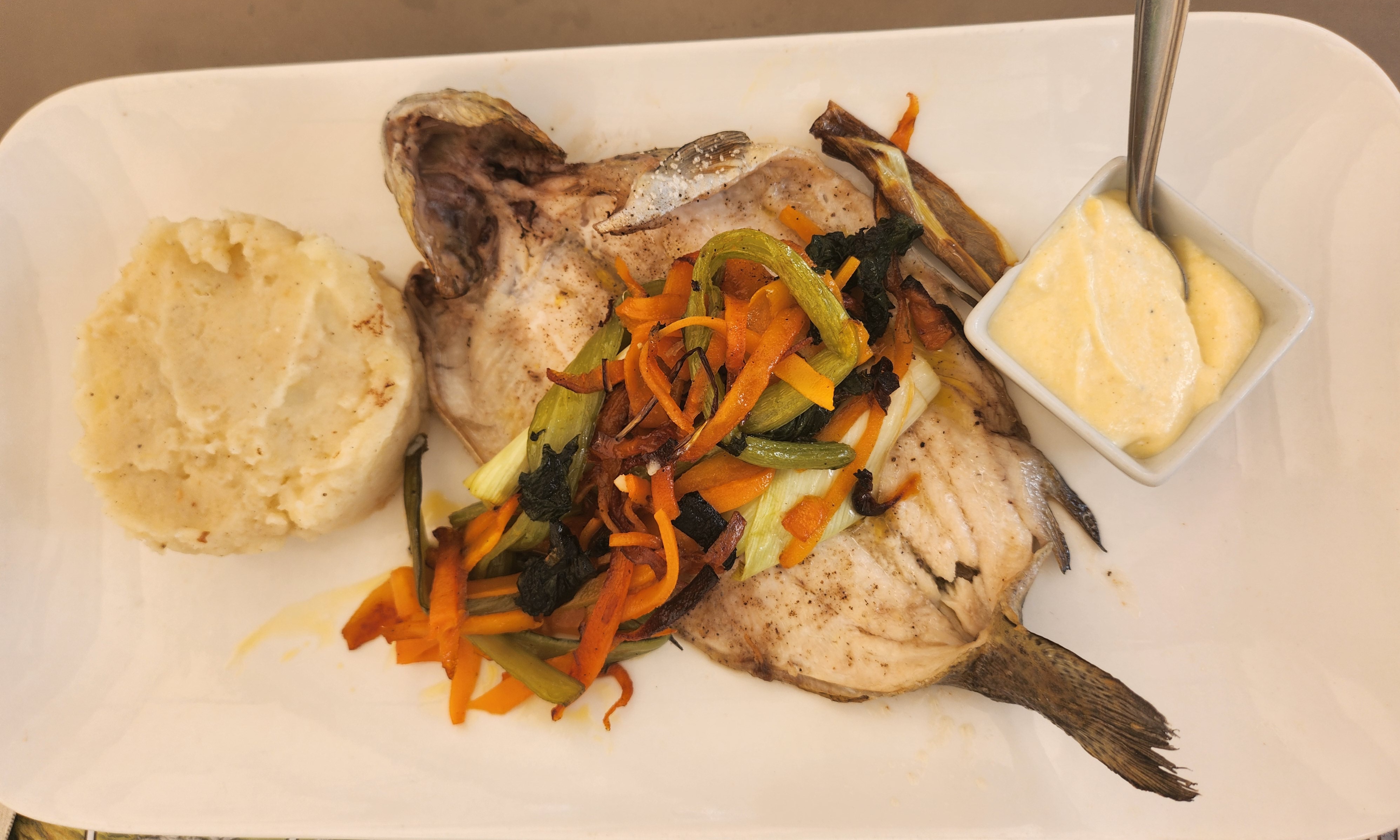 Cassolette de poisson servie encore congelée dans l'assiette...