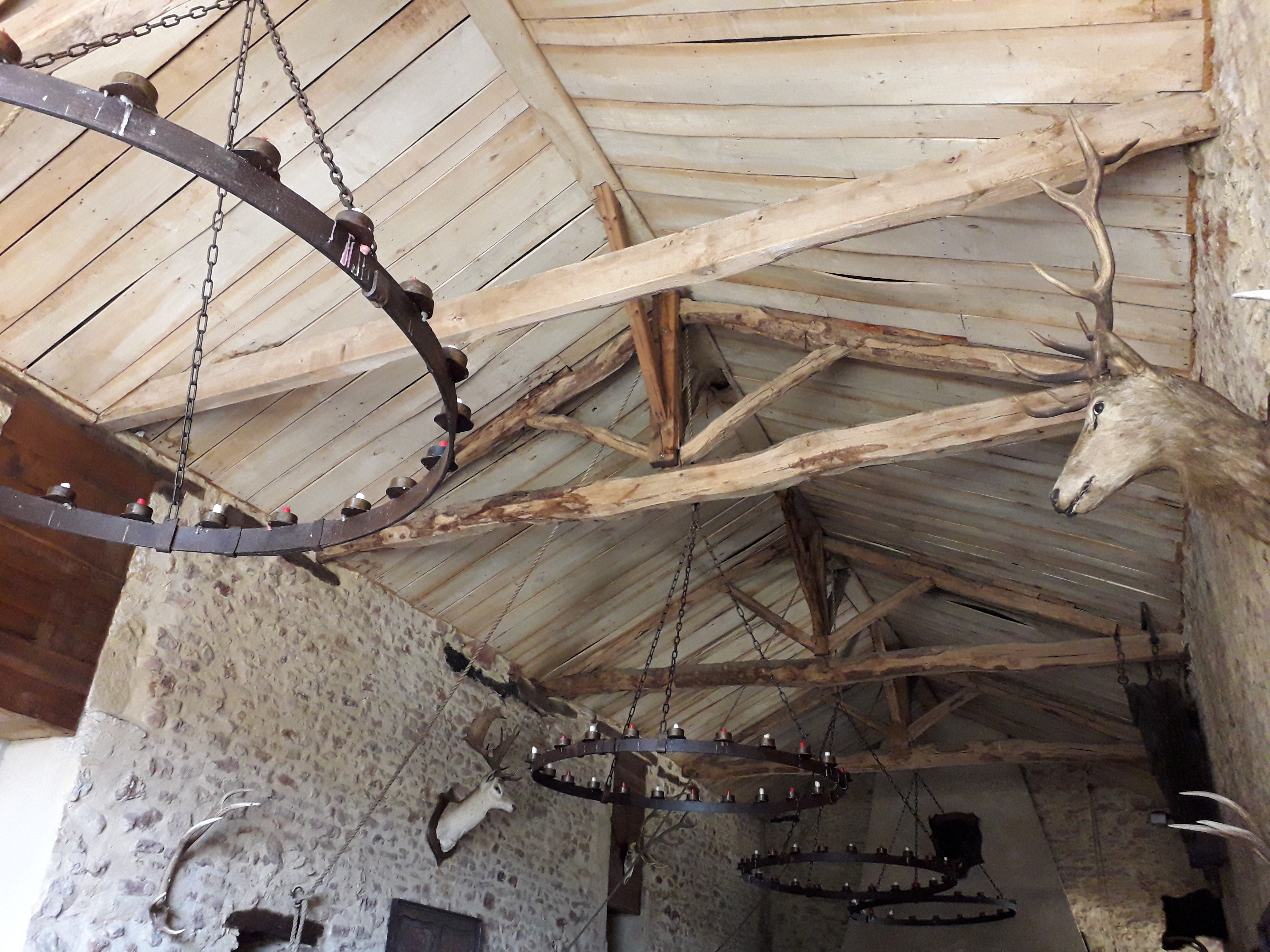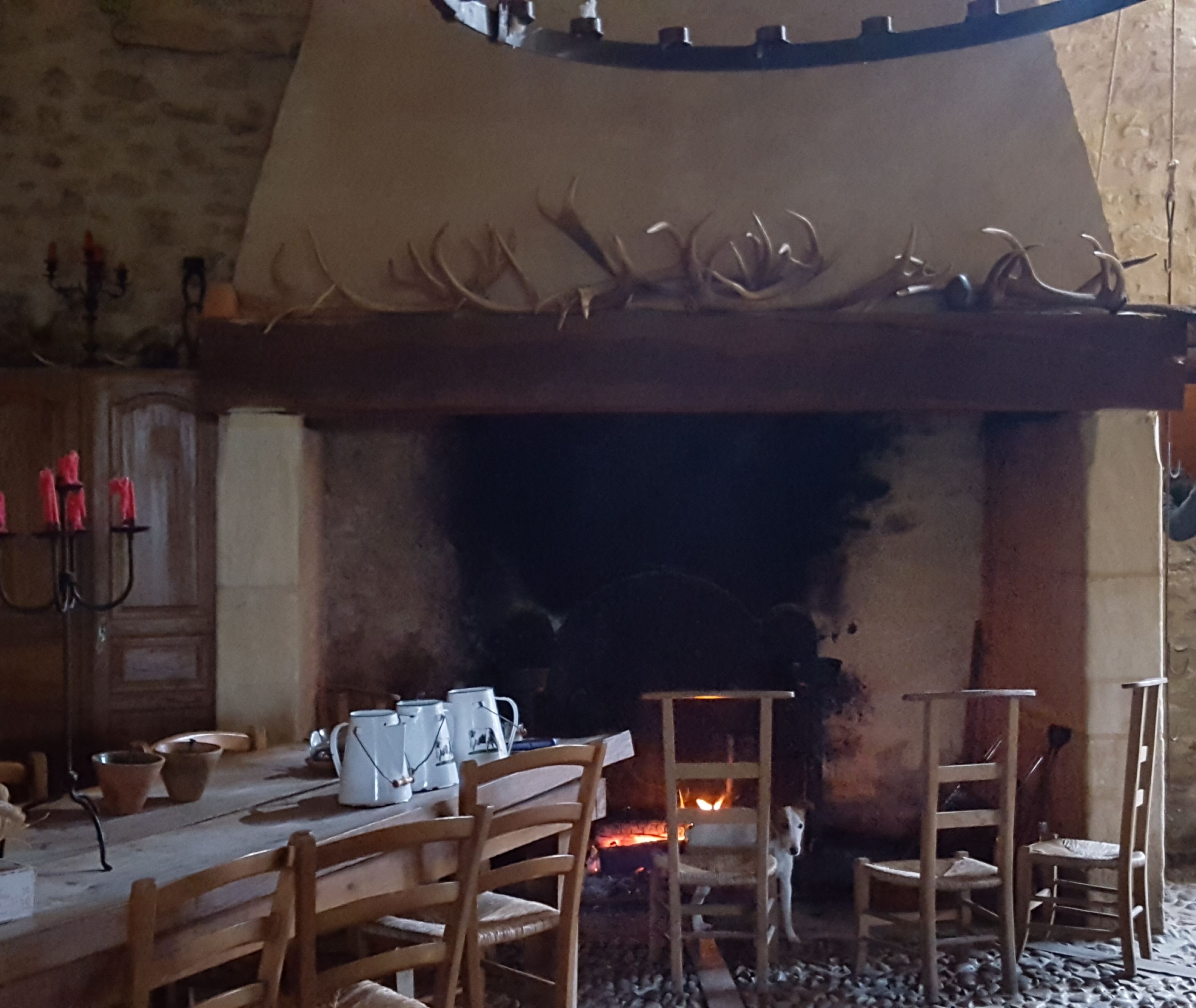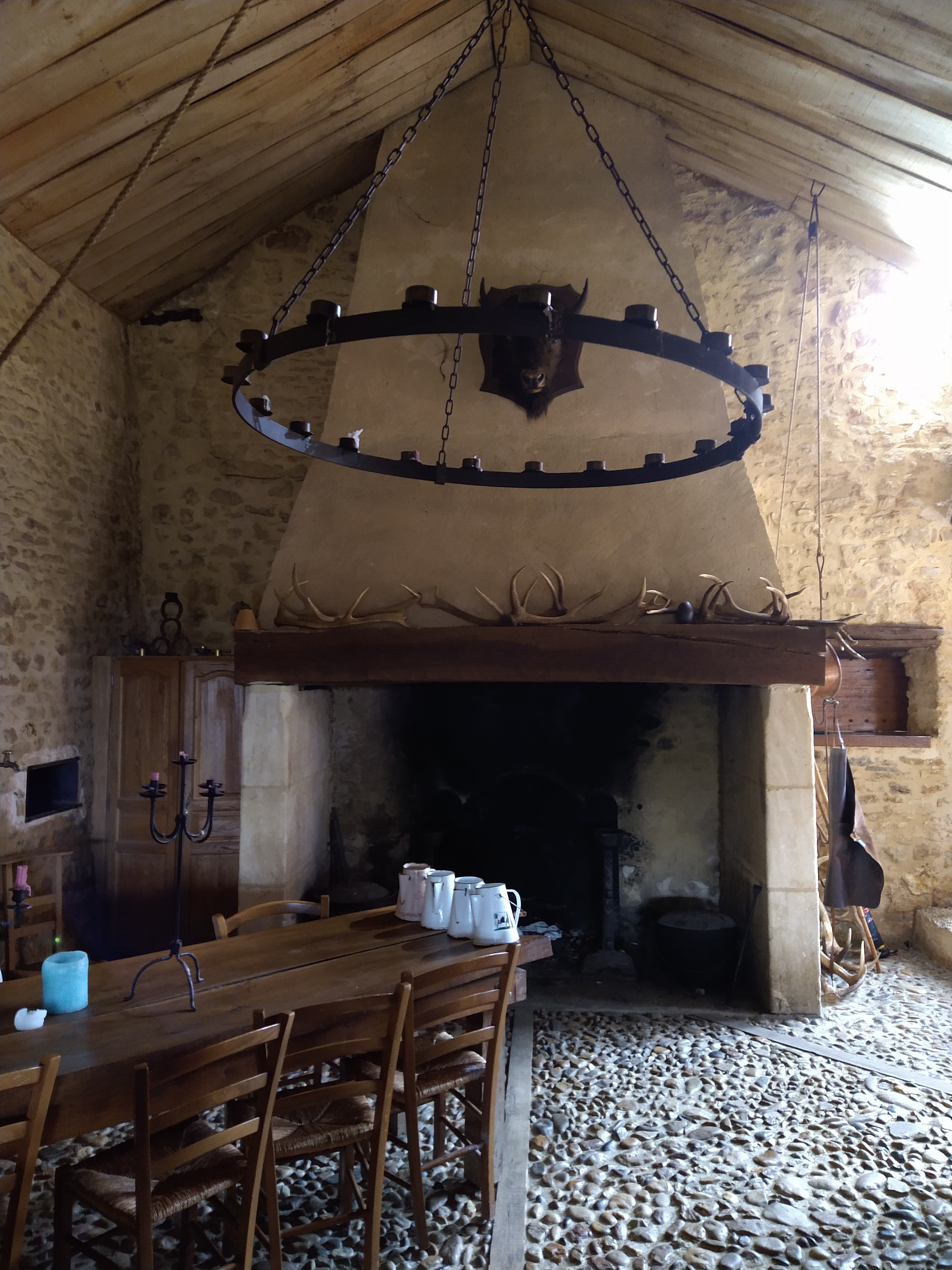 Amis de la bonne ripaille au gosier asséché, vous voici à la bonne adresse. Viande locale produite à quelques mètres de votre assiette, décors somptueux du 14eme siècle. Le doux fumé d'un feu de cheminée proche accompagnera votre expérience. Queni d'une lumière artificielle pour déguster vos fin mets, ici tout est éclairé de la lumière naturelle d'une bougie à votre table ainsi que de celle d'un lustre de bougies au plafond. Votre calice de vin ne sera que rarement vide, le tout sous l'oeil de Jacquouille du Buisson, le sanglier du domaine patrouillant devant la porte vitrée de la salle de l'auberge. Spectacle feral d'une harde cervidées pour le plaisir de nos bambins. En quelques mots, un endroit qui nous ramène à nos origines de bons vivants à la hauteur de ce qu'un vrai gaulois attend d'une auberge !